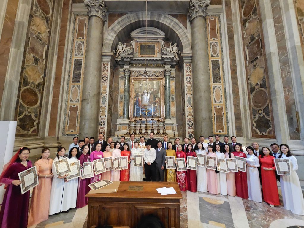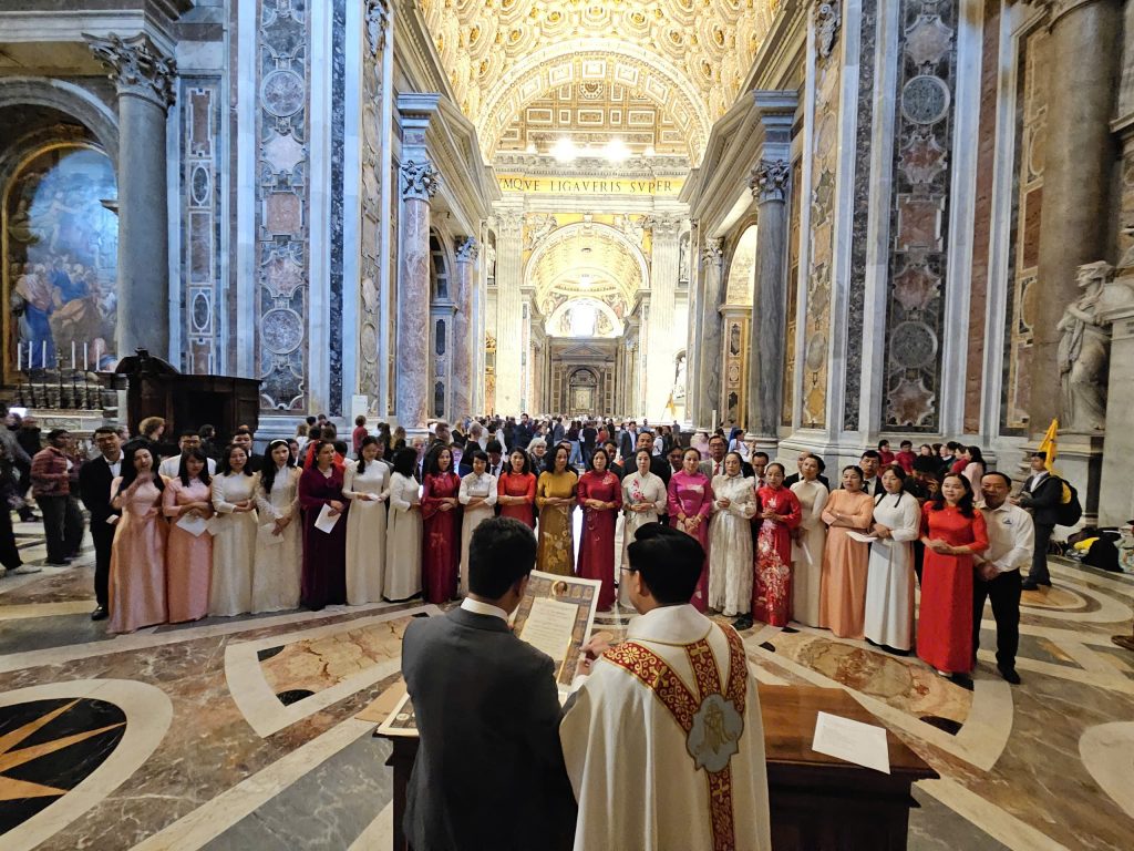 Thánh lễ hồng ân cho các gia đình – Dấu chỉ của Tình yêu và Phúc lành Sáng nay, 23/10/2025, trong bầu khí linh thiêng của Năm Thánh, đoàn hành hương Hội Doanh nhân Công giáo – Giáo phận Hải Phòng đã đến Đền thờ Thánh Phêrô – Vatican, trái tim của Giáo hội hoàn vũ, để cùng nhau hiệp dâng Thánh lễ đặc biệt cầu nguyện cho các gia đình và các đôi hôn phối trong đoàn.