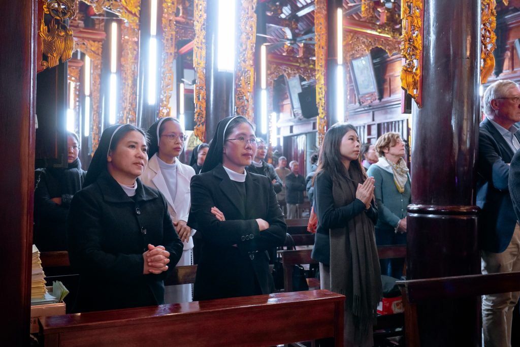 Cao điểm thiêng liêng của ngày thứ nhất là Thánh lễ lúc 18 giờ tại Nhà thờ Xâm Bồ, nơi toàn thể đoàn cùng hiệp thông trong lời cầu nguyện, đặt nền tảng đức tin cho toàn bộ chương trình giao lưu và hợp tác. Thánh lễ như một lời phó thác, xin Thiên Chúa chúc lành cho mọi cuộc gặp gỡ, trao đổi và dự định trong những ngày tiếp theo.