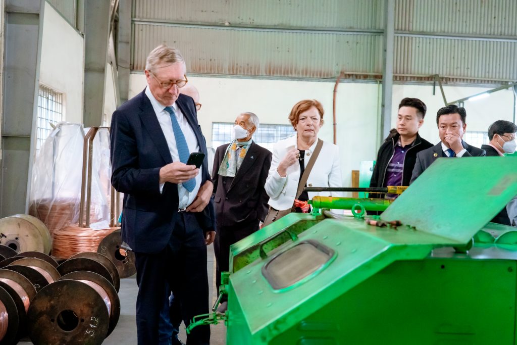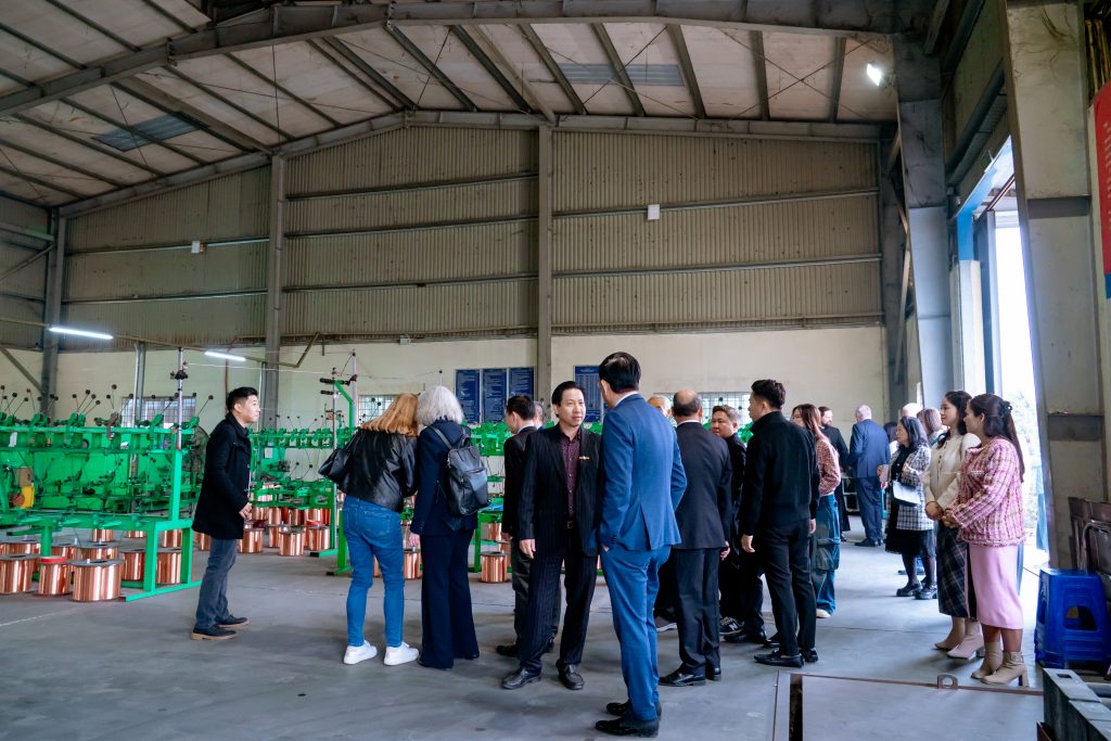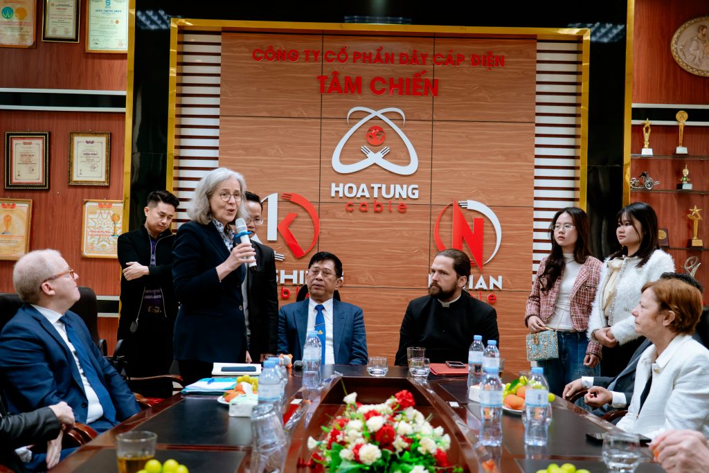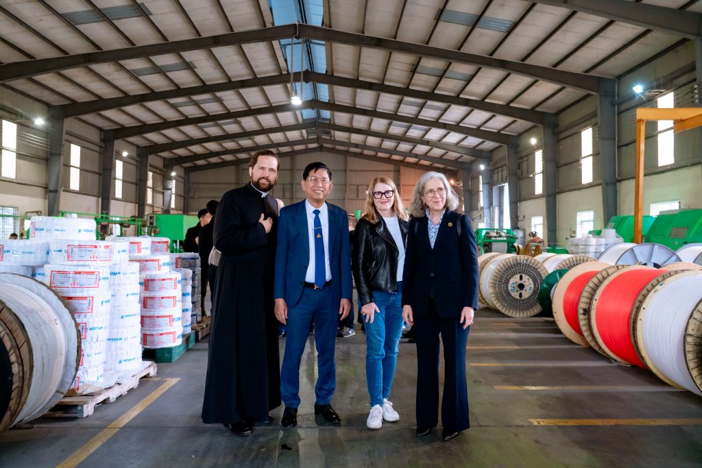 Thứ Ba, 10/02/2026, đoàn bắt đầu ngày mới từ rất sớm. Xe đưa đoàn đến thăm Công ty Cổ phần Dây Cáp Điện TÂM CHIẾN – TACHICABLE của ông Hironimo Đặng Văn Tâm, trưởng ban Phụng vụ – một doanh nghiệp Công giáo tiêu biểu tại Hải Phòng, hoạt động trong lĩnh vực sản xuất dây cáp điện công nghiệp và dân dụng. Chuyến thăm giúp đoàn UNIAPAC có cái nhìn thực tế về năng lực sản xuất, mô hình quản trị và tinh thần doanh nhân Công giáo Việt Nam – nơi kinh doanh được nhìn như một ơn gọi phục vụ con người và xã hội.