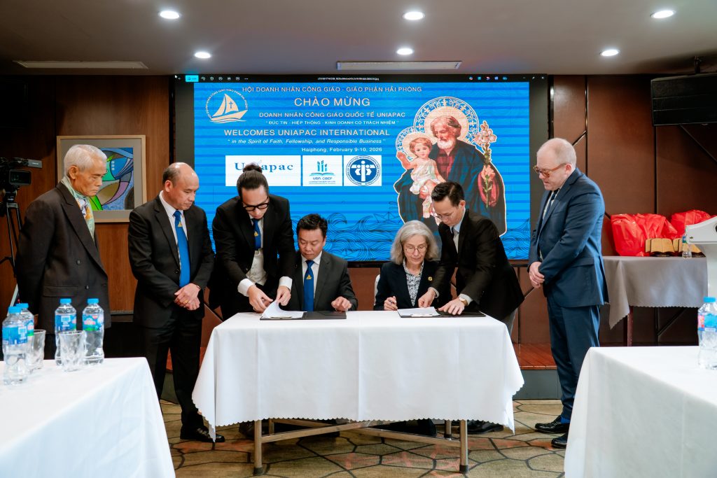 Đỉnh cao của hội nghị là nghi thức ký kết Biên bản Ghi nhớ (MOU), đánh dấu bước khởi đầu chính thức cho hành trình đồng hành lâu dài giữa cộng đoàn doanh nhân Công giáo Hải Phòng và mạng lưới UNIAPAC. Đây không chỉ là một văn bản hợp tác, mà là một cam kết sống đức tin cách cụ thể trong đời sống kinh doanh, cùng nhau xây dựng một nền kinh tế nhân bản, công bằng và hướng tới công ích.