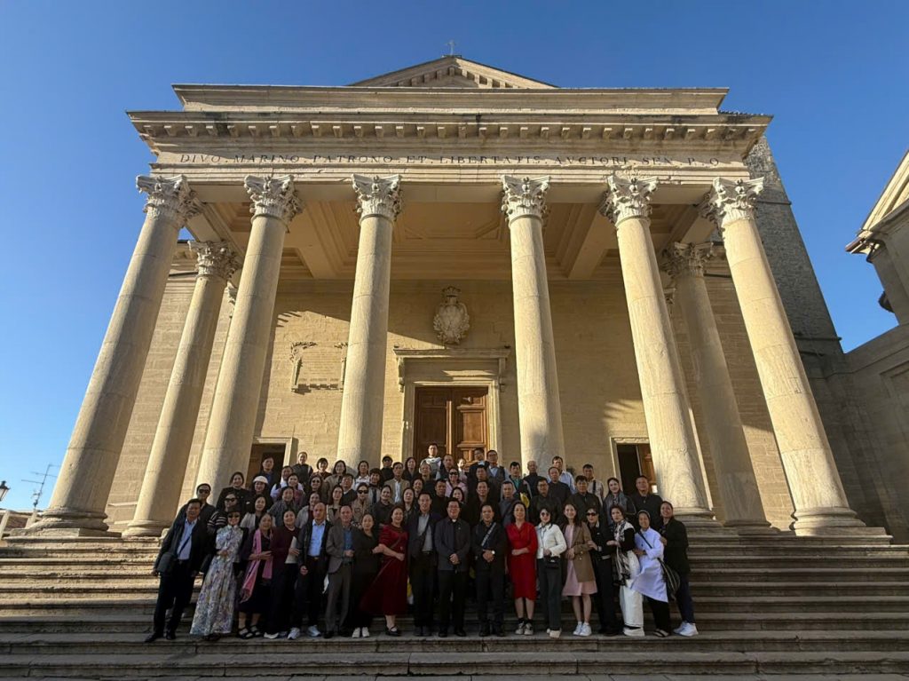 Doanh nhân Công giáo Hải Phòng tiếp tục sống đức tin giữa lòng châu Âu Sau những ngày đầu cầu nguyện tại Roma, kinh đô của Giáo Hội hoàn vũ, nơi đoàn được tham dự Thánh lễ tại Đền Thánh Phêrô và chiêm ngưỡng vẻ tráng lệ linh thiêng của Tòa Thánh Vatican, sáng ngày 24/10, đoàn hành hương Doanh nhân Công giáo Hải Phòng tiếp tục lên đường trong bầu khí vui tươi, tràn đầy tình huynh đệ. Trên suốt hành trình, mỗi thành viên đều cảm nhận rõ niềm hân hoan của người hành hương đang được sống trong tình yêu Thiên Chúa. Dừng chân tại Cộng hòa San Marino – miền đất của tự do và đức tin Chiều cùng ngày, đoàn đến thăm Cộng hòa San Marino – quốc gia nhỏ bé nhưng thanh bình nằm giữa lòng nước Ý. Tại đây, đoàn viếng Nhà thờ Thánh Marinus, vị sáng lập và bổn mạng của đất nước.
