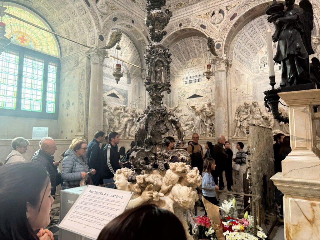 Ngày 25/10 – Hành trình đến Padova, viếng Thánh Antôn hay làm phép lạ Sáng ngày 25/10, đoàn tiếp tục di chuyển đến thành Padova, điểm đến linh thiêng gắn liền với vị thánh được người Công giáo Việt Nam đặc biệt yêu mến – Thánh Antôn thành Padova. Ngài được tôn vinh là “Tiến sĩ Tin Mừng”, nổi bật với lòng bác ái, trí khôn ngoan và những phép lạ kỳ diệu Thiên Chúa đã thực hiện qua lời cầu bầu của ngài.