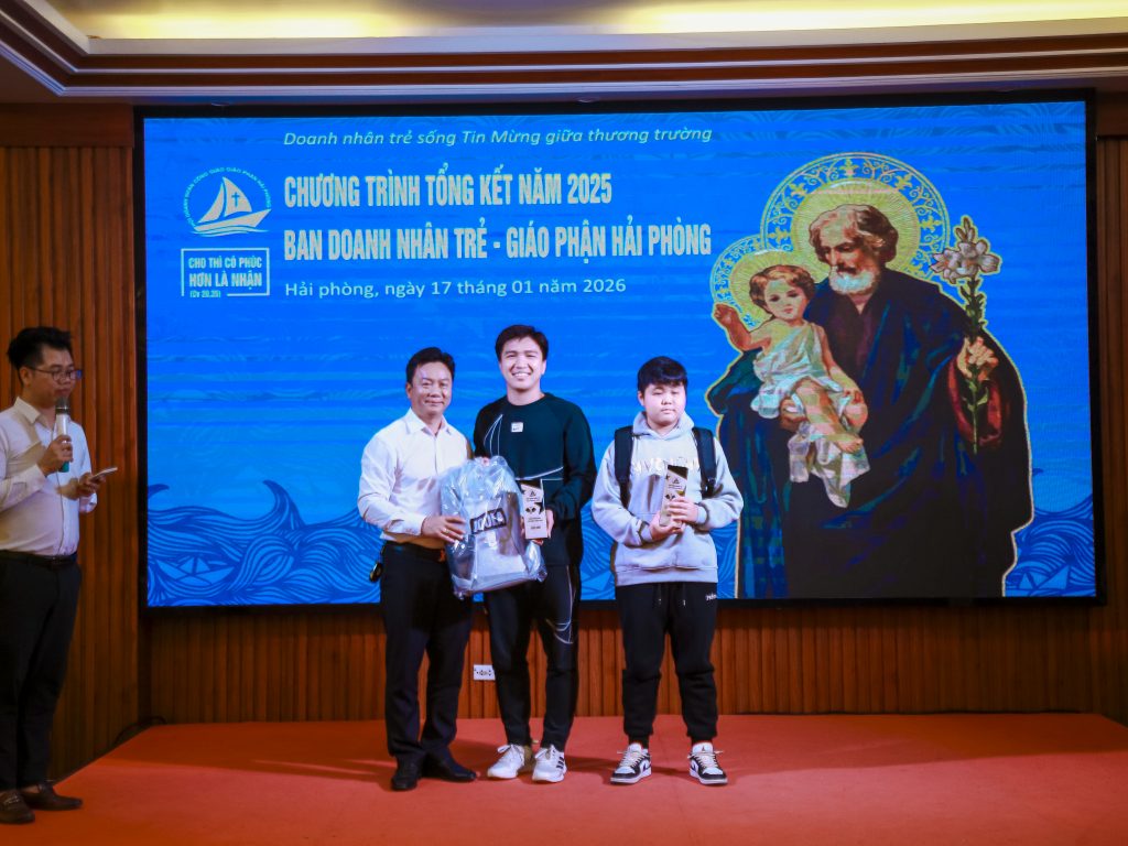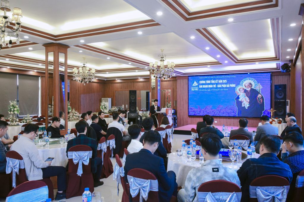 Trong bầu khí những ngày cuối năm âm lịch Ất Tỵ, ngày 17/01/2026, Ban Doanh nhân Trẻ – Giáo phận Hải Phòng đã tổ chức Chương trình Tổng kết năm 2025 với chủ đề “Doanh nhân trẻ sống Tin Mừng giữa thương trường”, tại Trung tâm Hội nghị Mai Hồng Phúc. Ngày gặp gỡ không chỉ là dịp nhìn lại hành trình một năm đã qua, mà còn là khoảng lắng cần thiết để mỗi người định hướng lại đời sống đức tin giữa nhịp sống kinh doanh nhiều thách đố.
