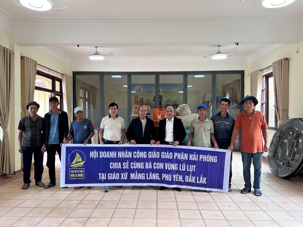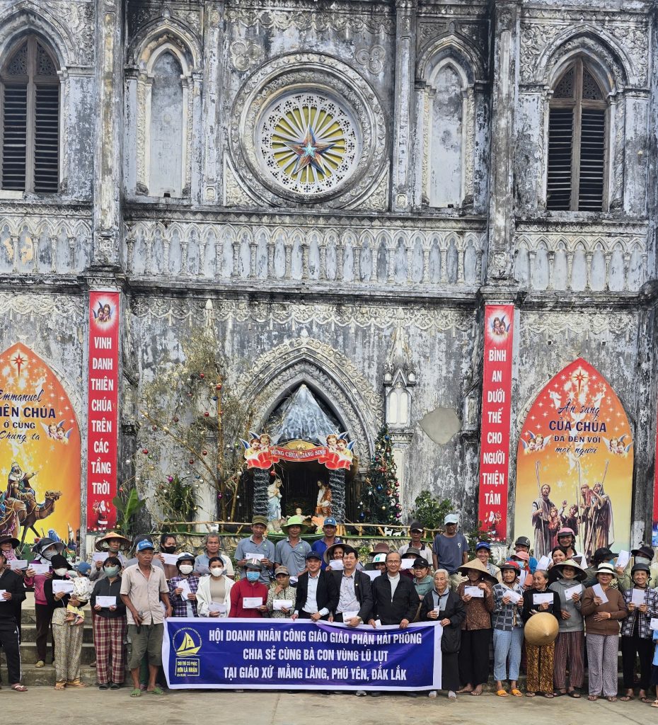 Trong thời gian qua, hình ảnh mùa lũ lịch sử tràn qua các tỉnh khu vực miền Trung đã để lại nhiều đau thương, mất mát cho người dân, đặc biệt là những gia đình nghèo nơi các vùng bị ảnh hưởng nặng nề. Với tinh thần bác ái Kitô giáo – một trong những tôn chỉ hoạt động quan trọng của Hội Doanh nhân Công giáo giáo phận Hải Phòng, trong hai ngày 19/12 – 20/12, anh chị em đã lên đường đến với giáo xứ Mằng Lăng, vùng lũ lụt thuộc thôn Hội Tín, xã Tuy An Đông, tỉnh Đắk Lắk, để thăm viếng nhà thờ và hỗ trợ bà con giáo dân đang chịu nhiều thiệt hại sau cơn lũ dữ.