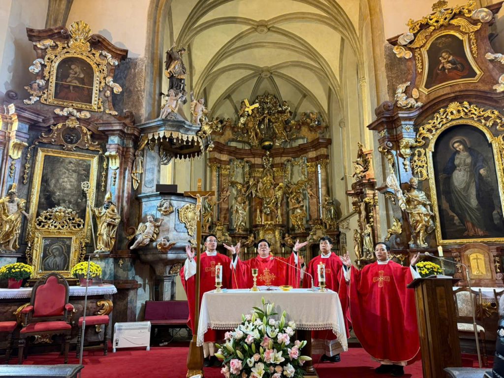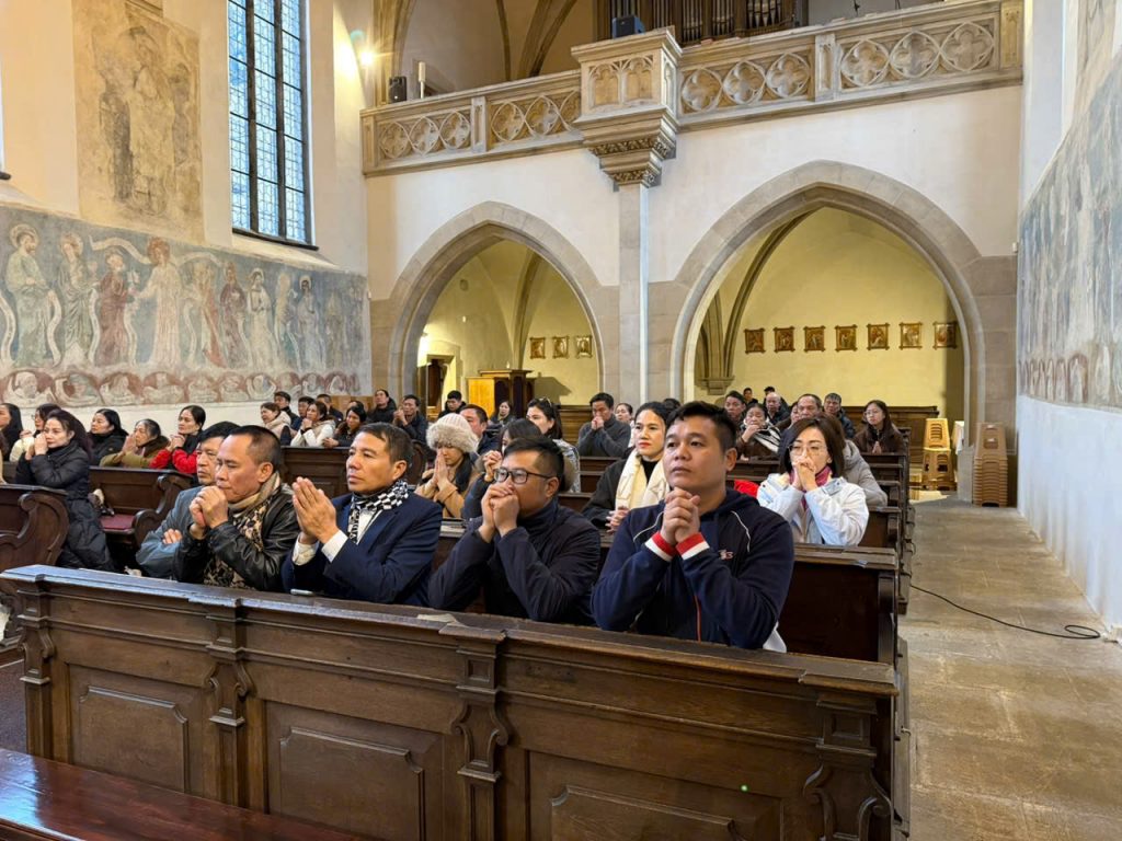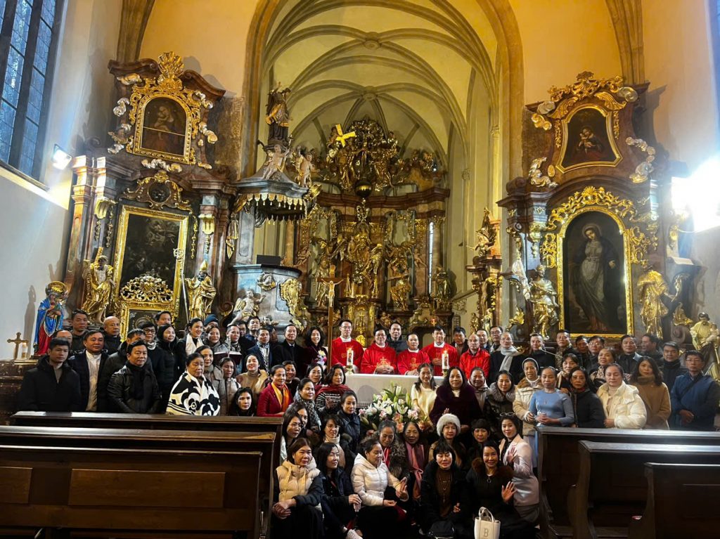 Sáng hôm sau, đoàn long trọng dâng Thánh lễ tại nguyện đường trong Đền thờ bên trên hầm mộ Thánh Phêrô, cùng đi qua Cửa Thánh – biểu tượng của lòng thương xót và ơn toàn xá. Từng lời kinh, từng giọt nước mắt xúc động hòa quyện cùng niềm tin và lòng biết ơn sâu sắc đối với Thiên Chúa. Niềm vui còn lớn lao hơn nữa khi xảy ra sự kiện hiếm gặp: 20 cặp vợ chồng kỷ niệm ngày cưới 15 năm – 20 năm – 25 năm – 30 năm cùng hiệp thông tạ ơn Chúa trong thánh lễ này. Từ Rome, đoàn tiếp tục hành trình đến San Marino, đất nước nhỏ bé nhưng bình yên, rồi tới Padova – nơi an nghỉ của Thánh Antôn Padova, vị thánh được người Việt Nam đặc biệt yêu mến và kính nhớ. Tại đây, đoàn hiệp dâng Thánh lễ, cầu nguyện cho các gia đình, cho công việc và cho Giáo phận thân yêu luôn được bình an, thánh thiện và tràn đầy niềm hy vọng. Rời nước Ý, đoàn vượt qua dãy núi Alps hùng vĩ, tiến vào Innsbruck (Áo), chiêm ngưỡng vẻ đẹp kỳ diệu của tạo hóa nơi “nóc nhà châu Âu”. Đó cũng là hình ảnh ẩn dụ tuyệt vời cho hành trình đức tin – nơi người hành hương được mời gọi vượt qua đỉnh cao của chính mình, bỏ lại những giới hạn, yếu đuối và mệt mỏi để tìm lại nguồn mạch bình an nội tâm. Tại Munich (Đức), đoàn cùng nhau cầu nguyện trong Nhà thờ Đức Bà Frauenkirche, biểu tượng của lòng tin vững bền giữa bao biến động thời gian. Và khi dừng chân ở Praha (Séc) – thành phố ngàn tháp cổ kính, đoàn đã có giây phút lắng đọng, cầu nguyện tạ ơn Chúa tại Nhà thờ Thánh Nicolas – nơi đây là giáo xứ Việt Nam và được trao phó cho Dòng Chúa Cứu Thế coi sóc, khép lại một hành trình đầy ý nghĩa bằng Thánh lễ tạ ơn và đêm Gala hiệp nhất, yêu thương. Trở về sau chuyến đi – Hành trình đức tin – Hành trình của hy vọng, mỗi người hành hương mang trong mình một sự biến đổi nội tâm sâu sắc. Những ngày trên đất thánh không chỉ là chuyến đi bên ngoài, mà là cuộc hành trình thiêng liêng hướng vào bên trong – nơi con người gặp gỡ chính mình và gặp gỡ Thiên Chúa. Trong Năm Thánh Hy Vọng, đoàn hành hương đã cảm nhận rõ hơn lời mời gọi của Giáo Hội: hãy trở nên chứng nhân của niềm hy vọng, gieo rắc bình an và yêu thương vào cuộc sống hôm nay.